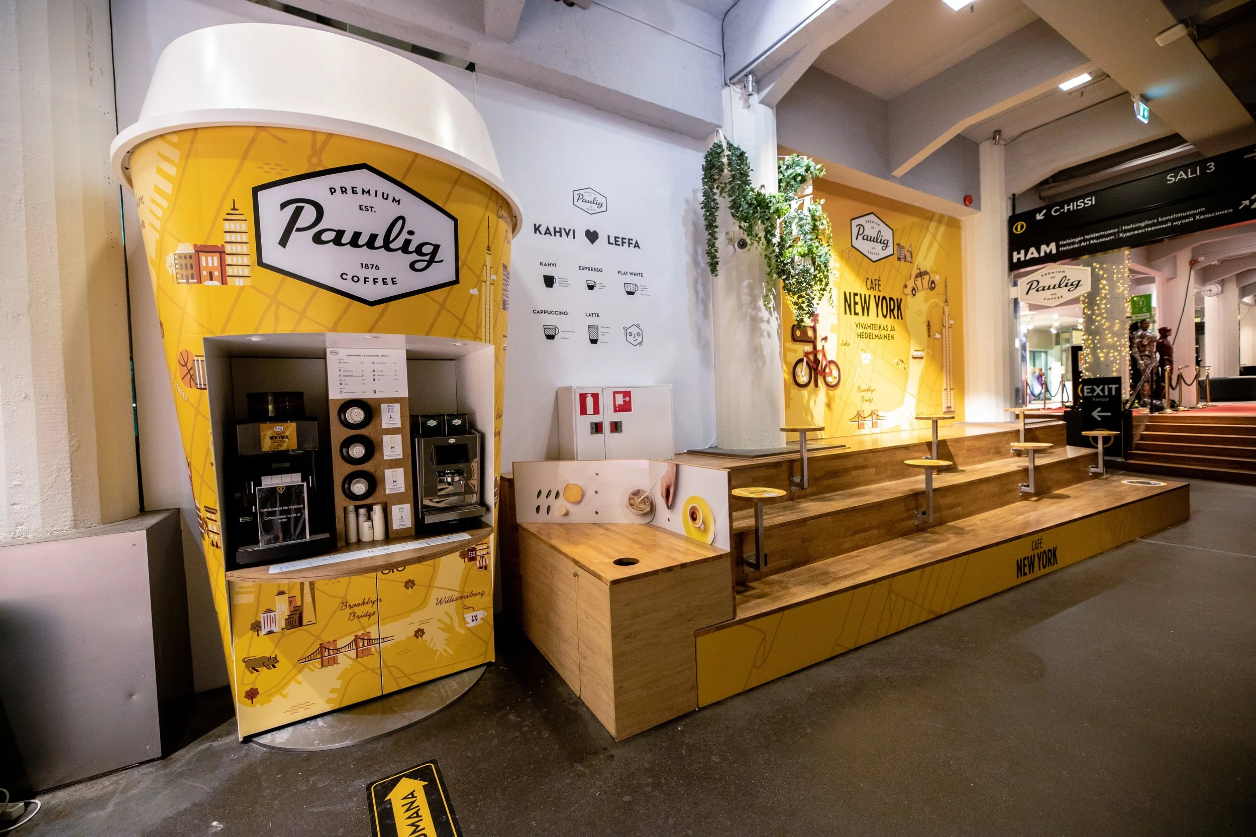 Tilapäiset tapahtumarakenteet tai pysyvät myymäläratkaisut sekä tuotteiden ja brändien esillepanot sisätiloissa.